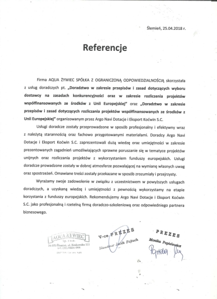 Referencje od firmy: AQUA ŻYWIEC