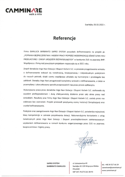 Referencje od firmy: GIANLUCA BARBIRATO SAPRO SYSTEM