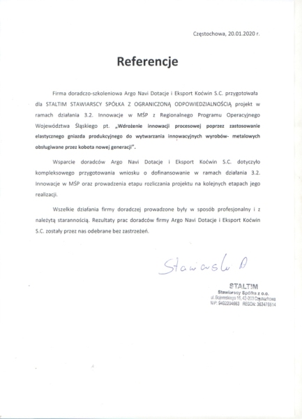 Referencje od firmy: STALTIM STAWIARSCY Sp. z o.o.